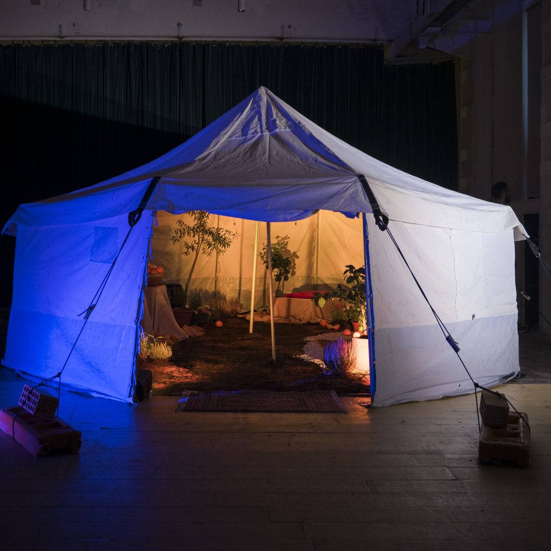 What Will We Do Without Exile? is een immersieve installatie die een rijke Palestijnse wereld onthult, verborgen in een vluchtelingentent. Het werk nodigt publiek uit om zich een wereld voorbij bezetting voor te stellen. Neem plaats tussen sinaasappel- en olijfbomen, luister naar geluiden van de toekomst en ervaar hoop, veerkracht en bevrijding.